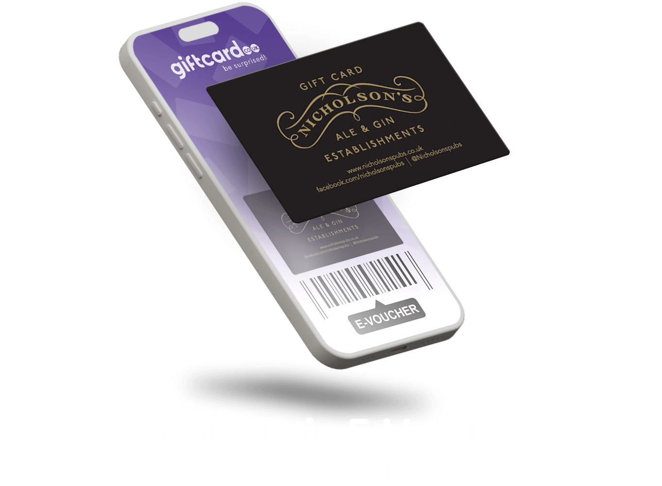 What would be the perfect present for the Nicholson's pub-loving foodie in your life? A gift card! Squeeze every drop of enjoyment out of their birthday, graduation, or whatever occasion with Nicholson's gift cards. A gift card gives them the freedom to create their own fantastic night out and make memories that will last a lifetime. They can spend it on anything from top-quality craft beer and wine to tasty evening meals and sports games at the bar. Just load a gift card with between £5 and £150 and know you've invested in something they'll treasure. Even better, gift cards come with fast delivery and e-card options, so you can always order that last-minute present with ease.